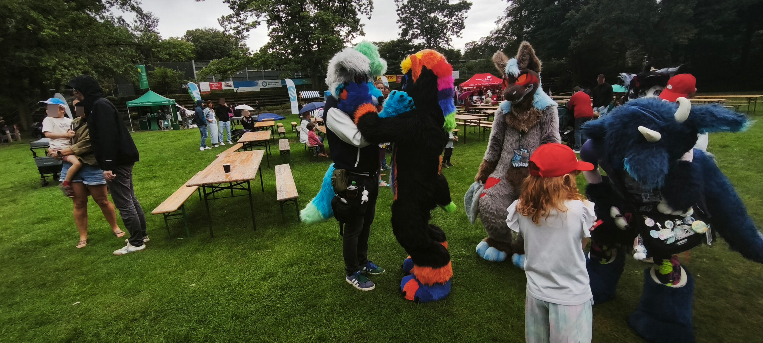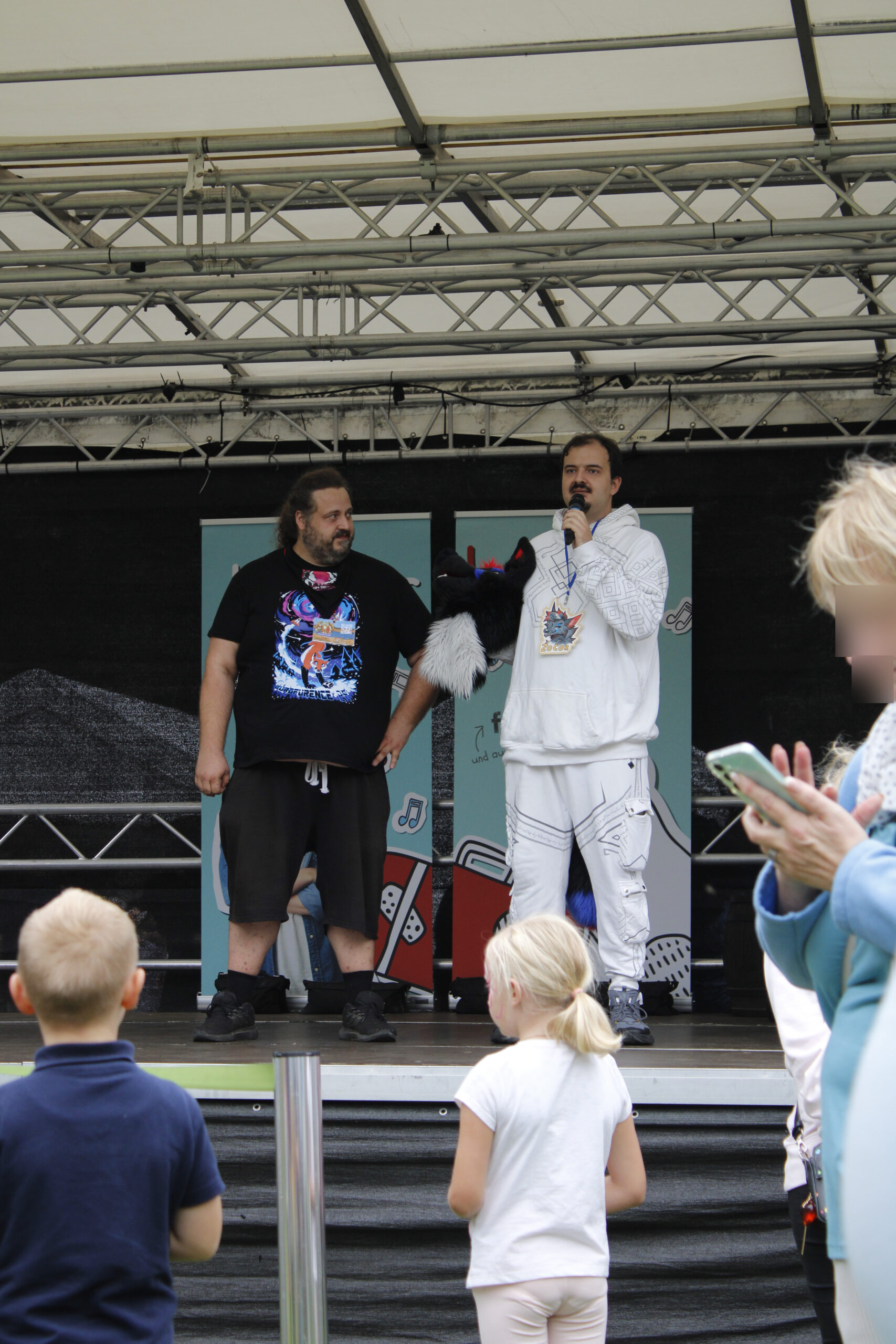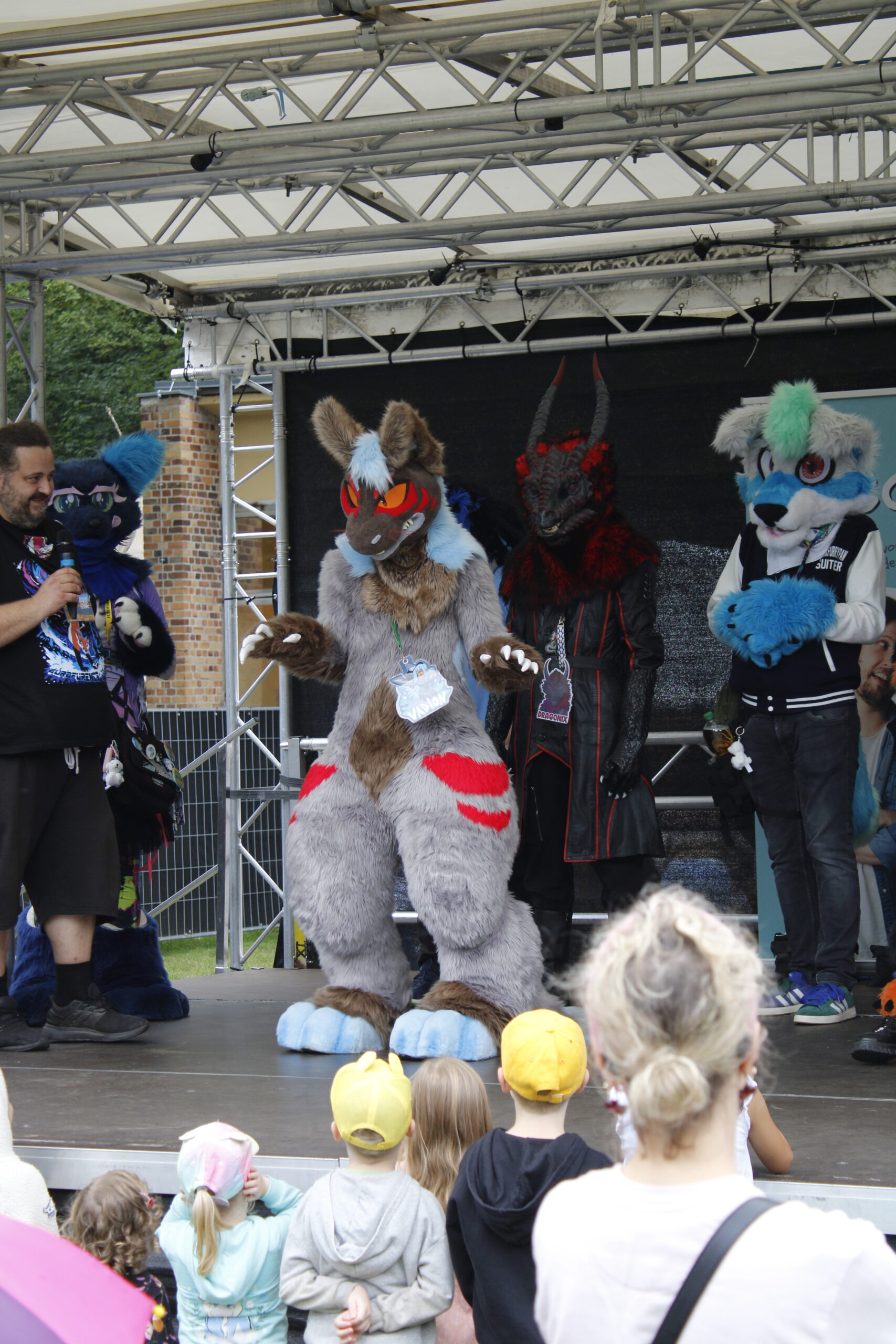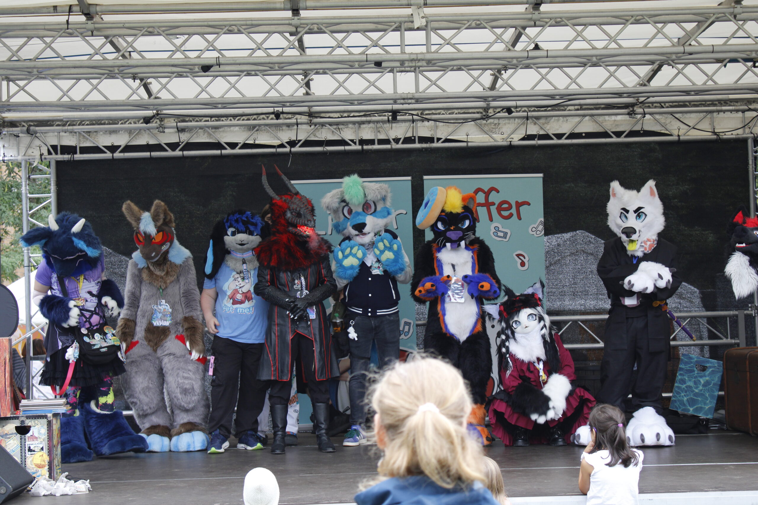 Um 13:00 Uhr standen wir auf der Bühne, erklärten, was es bedeutet, ein Furry zu sein, und spielten mit den Kindern ein lustiges Ratespiel. Sie durften erraten, welche Tiere unsere Suits inspiriert haben und hatten dabei riesigen Spaß.