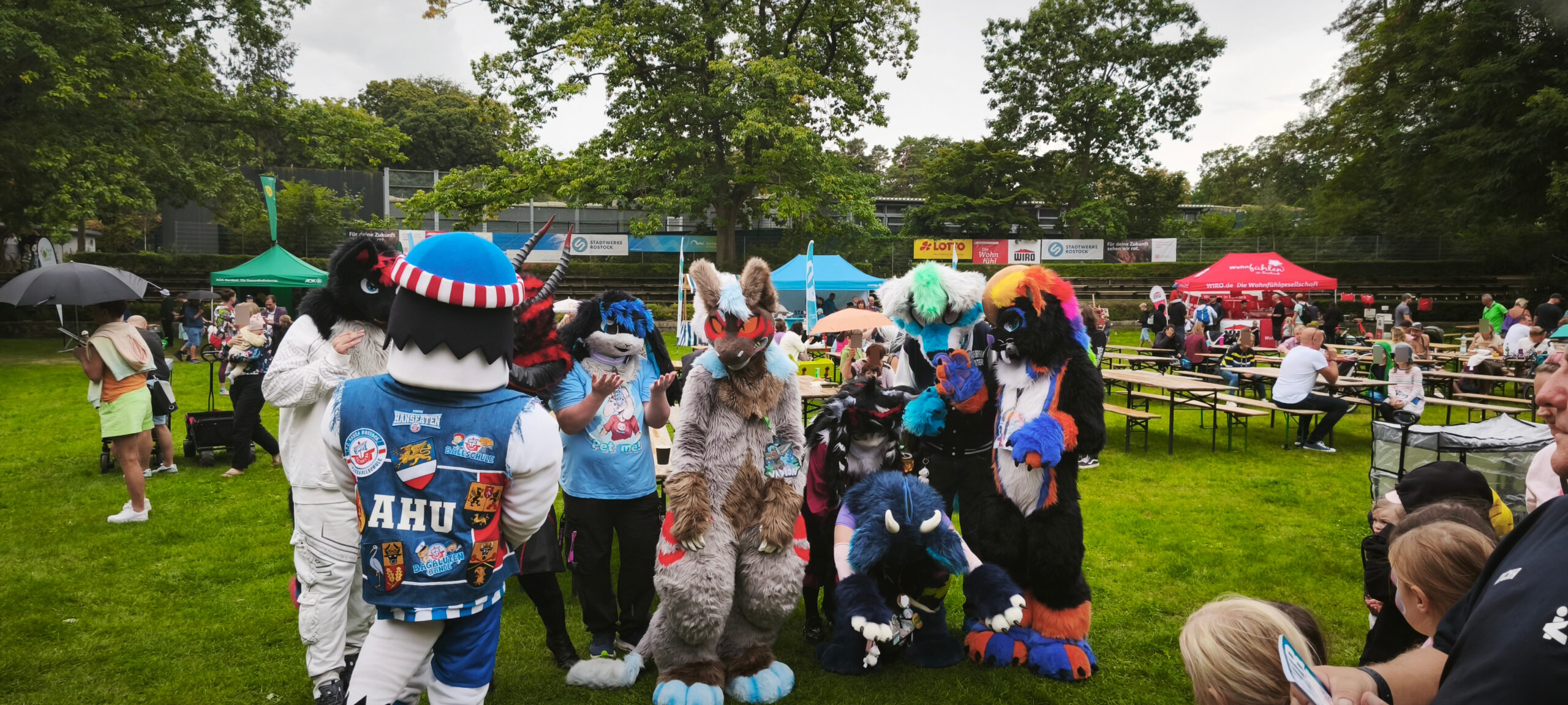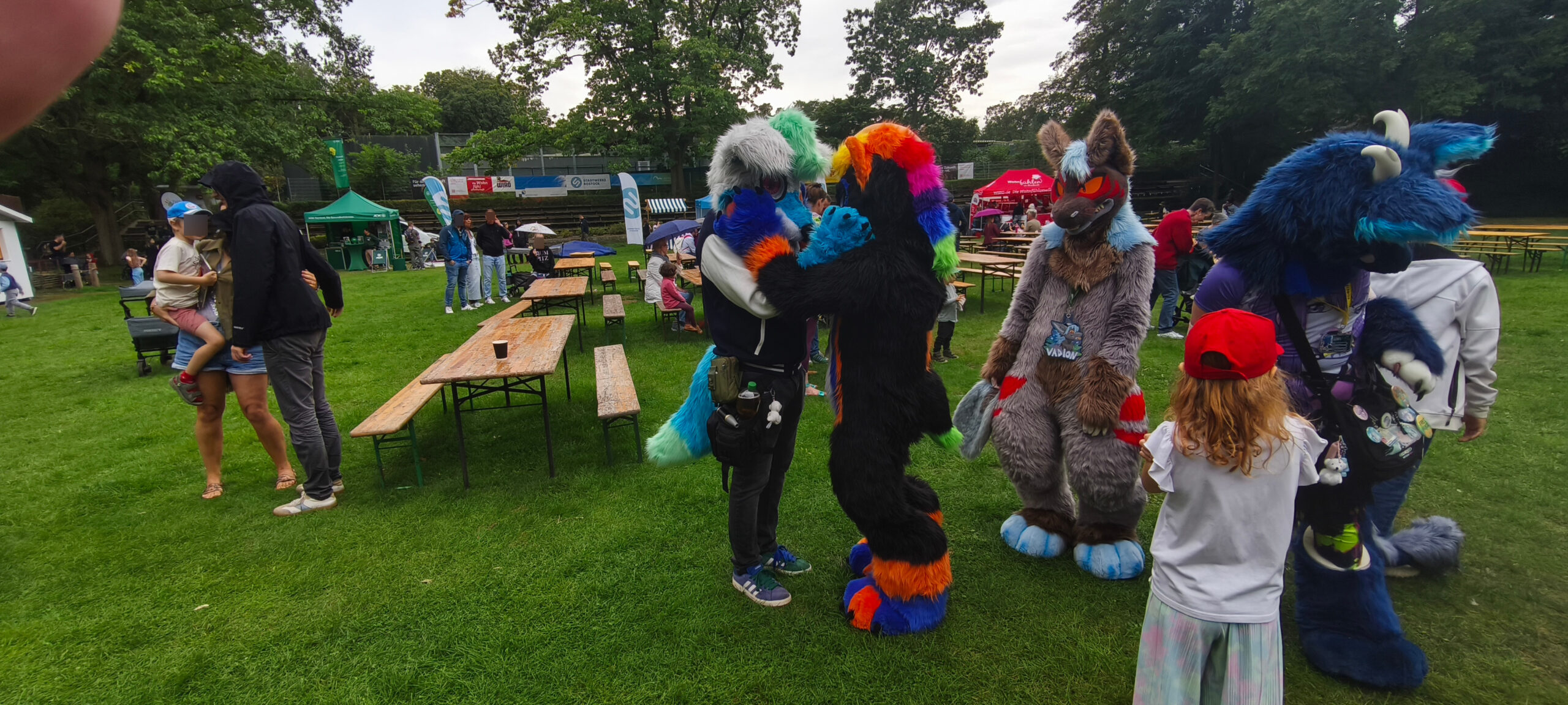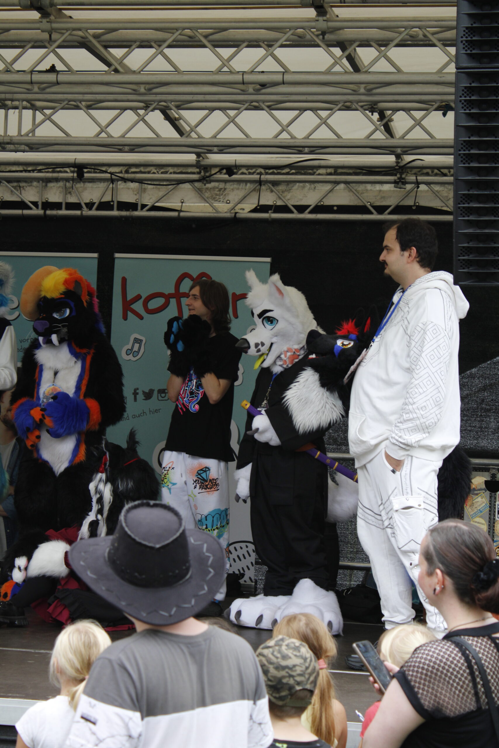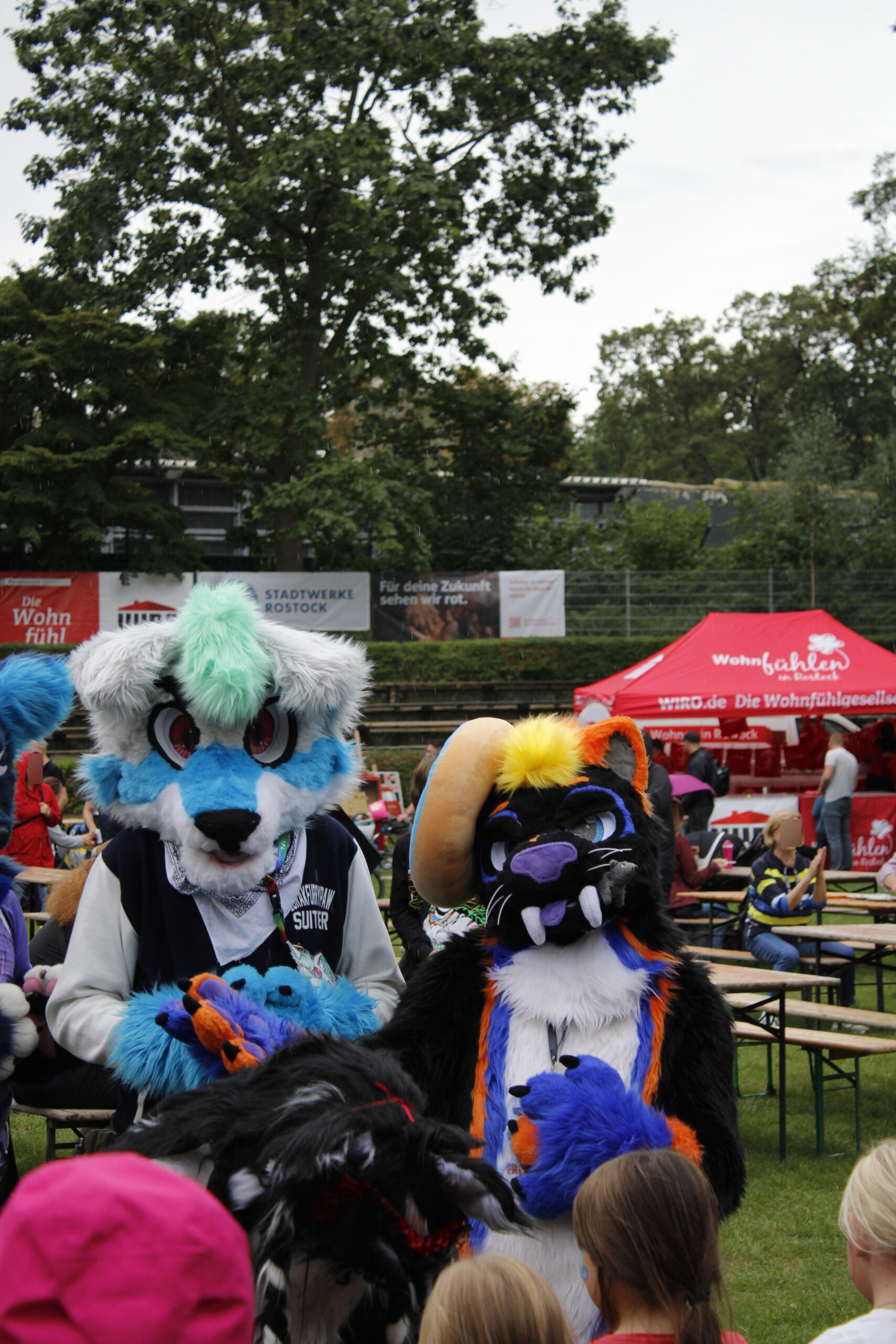 Um 13:00 Uhr standen wir auf der Bühne, erklärten, was es bedeutet, ein Furry zu sein, und spielten mit den Kindern ein lustiges Ratespiel. Sie durften erraten, welche Tiere unsere Suits inspiriert haben und hatten dabei riesigen Spaß.