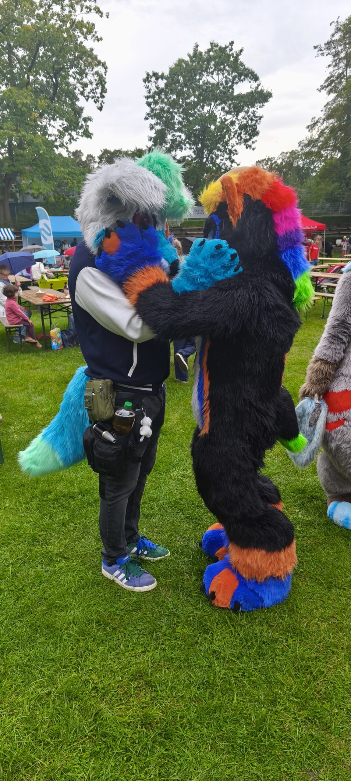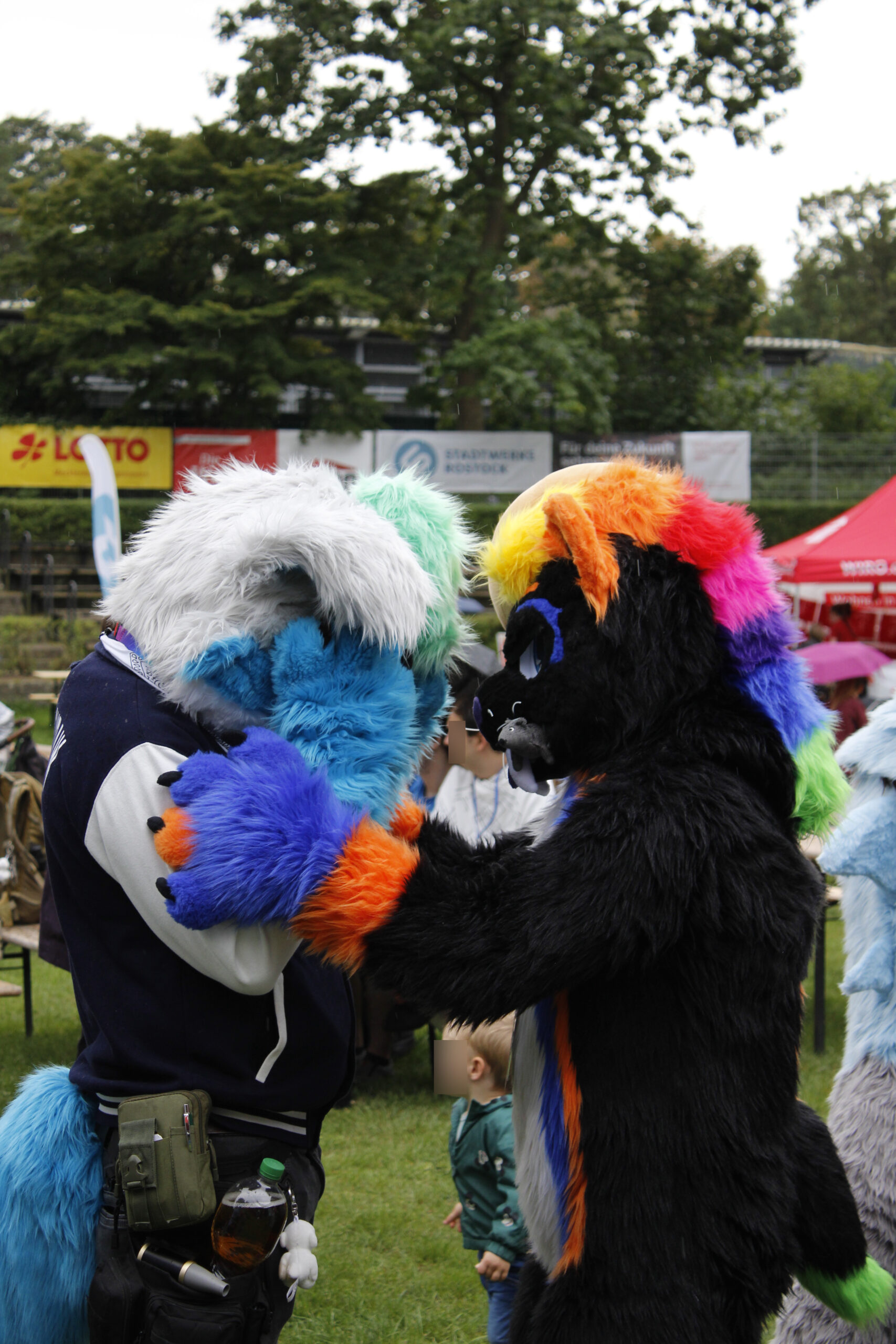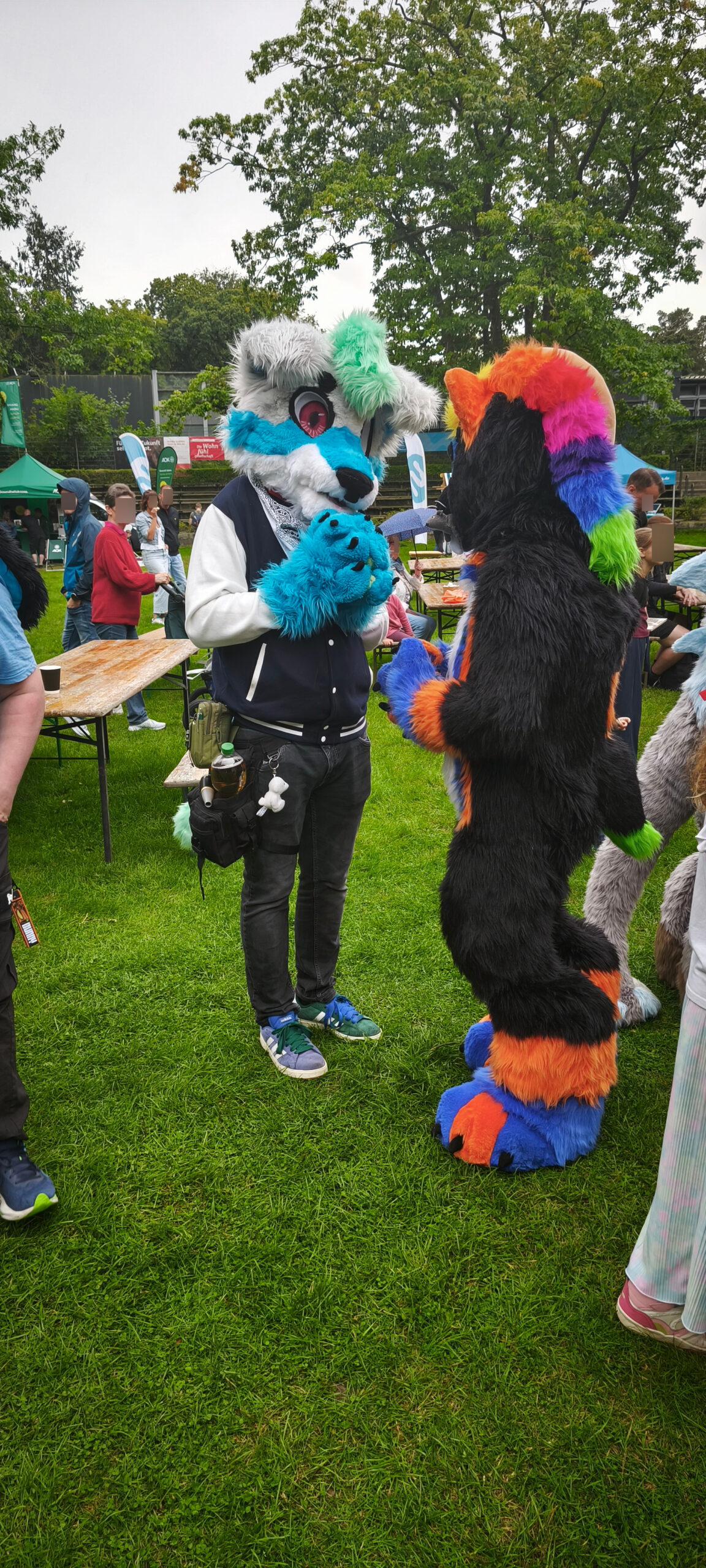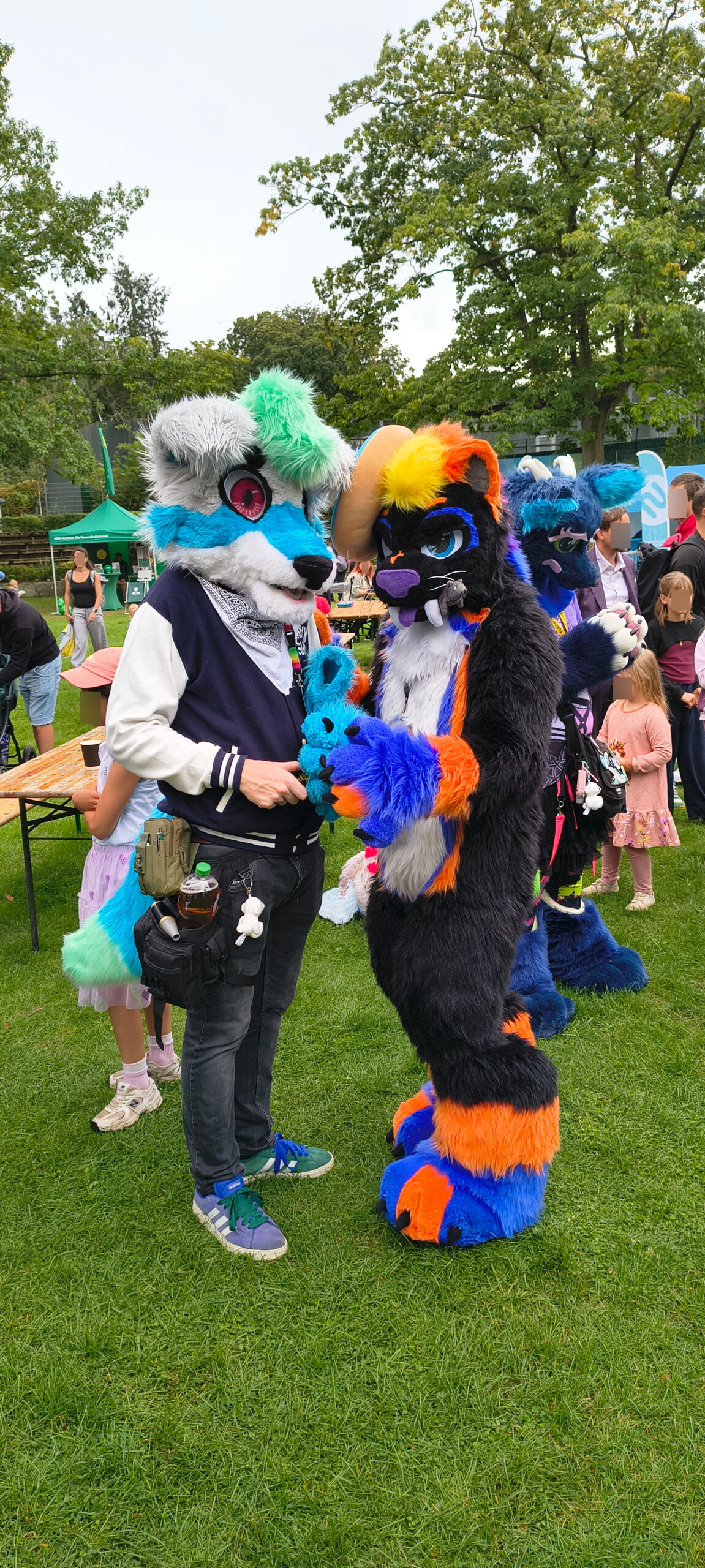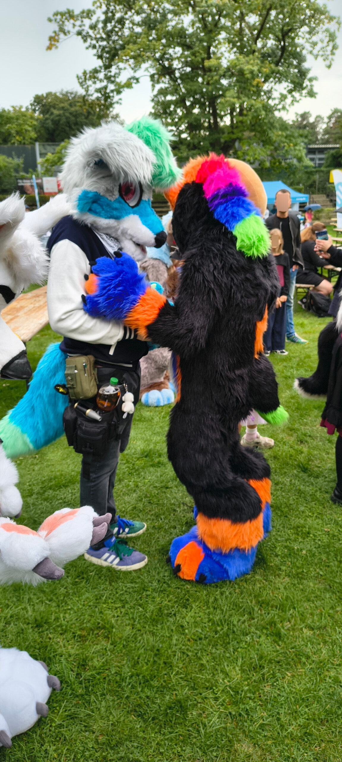 Um 13:00 Uhr standen wir auf der Bühne, erklärten, was es bedeutet, ein Furry zu sein, und spielten mit den Kindern ein lustiges Ratespiel. Sie durften erraten, welche Tiere unsere Suits inspiriert haben und hatten dabei riesigen Spaß.