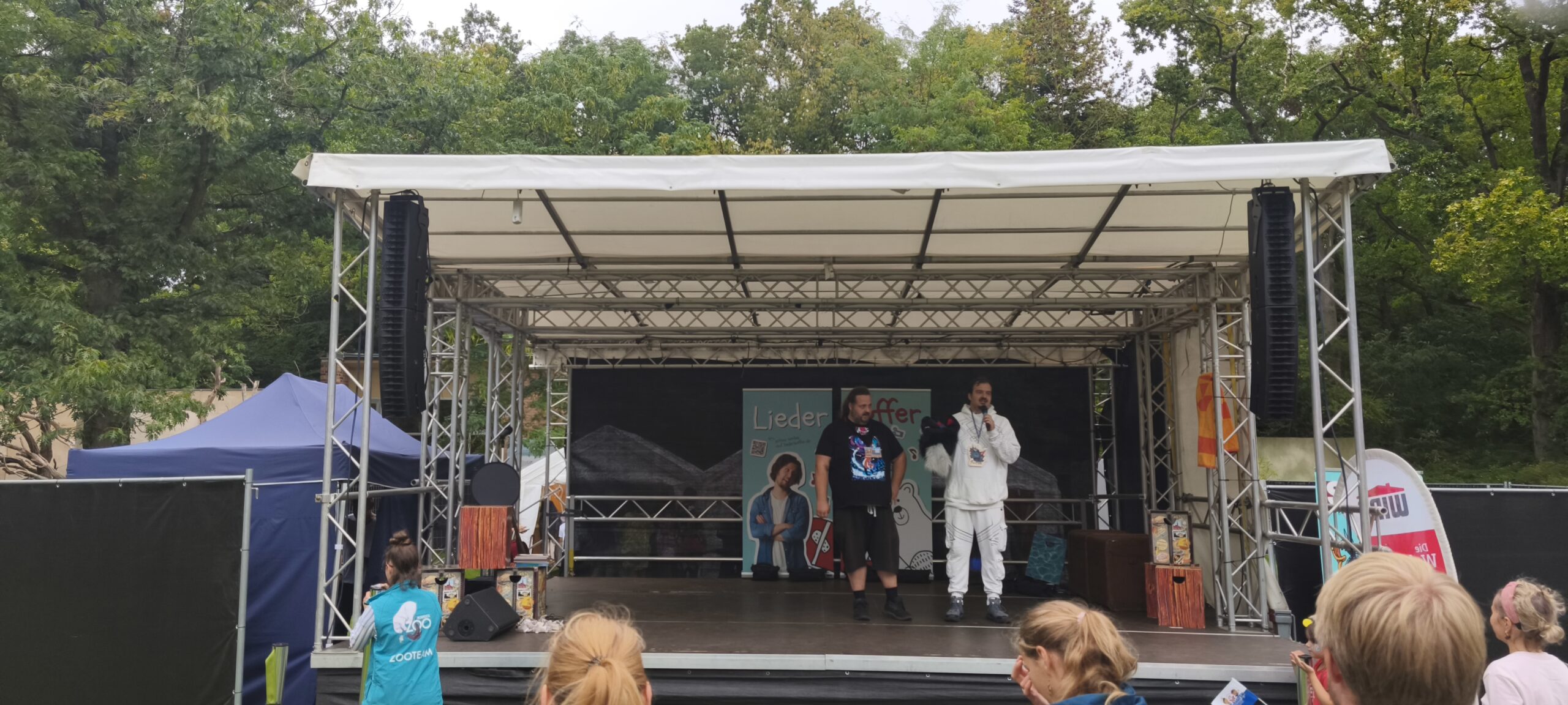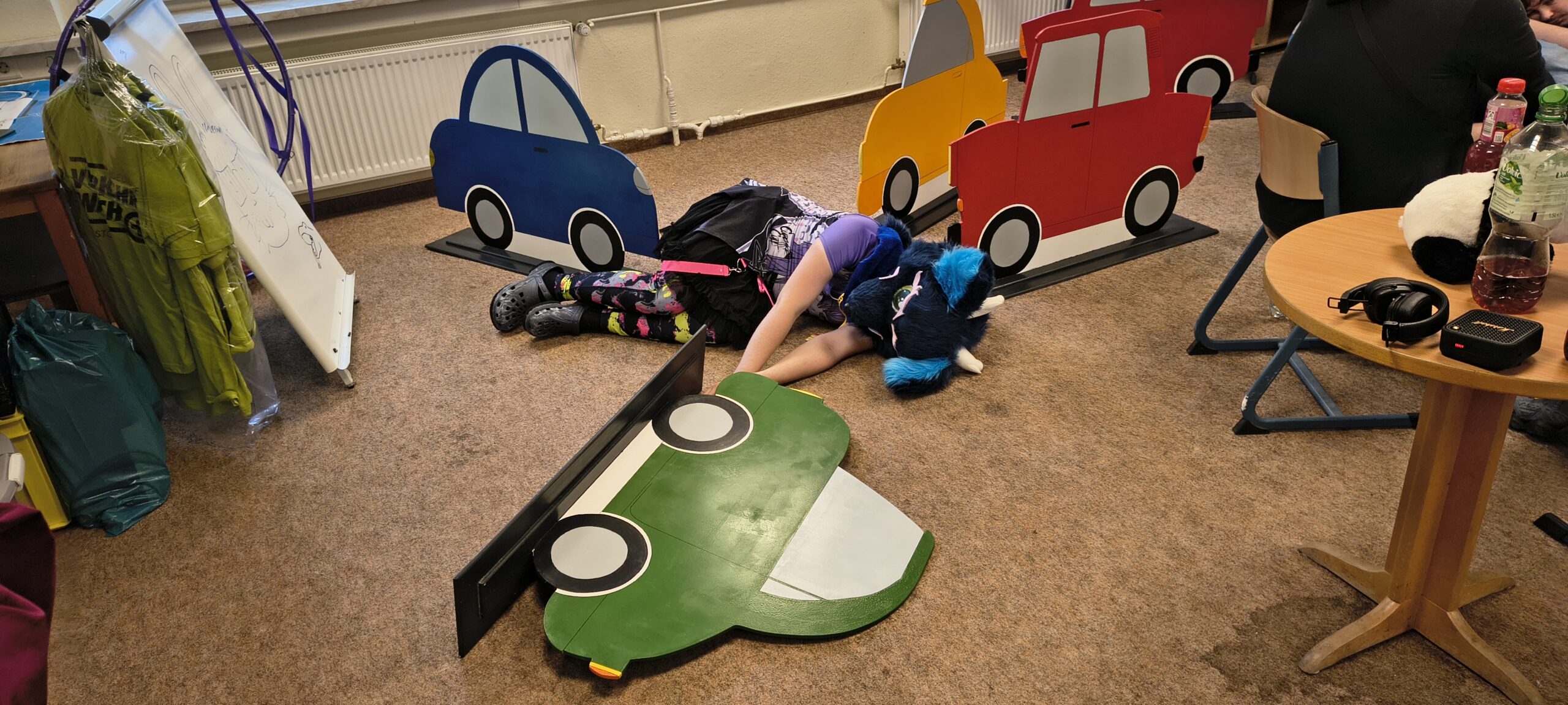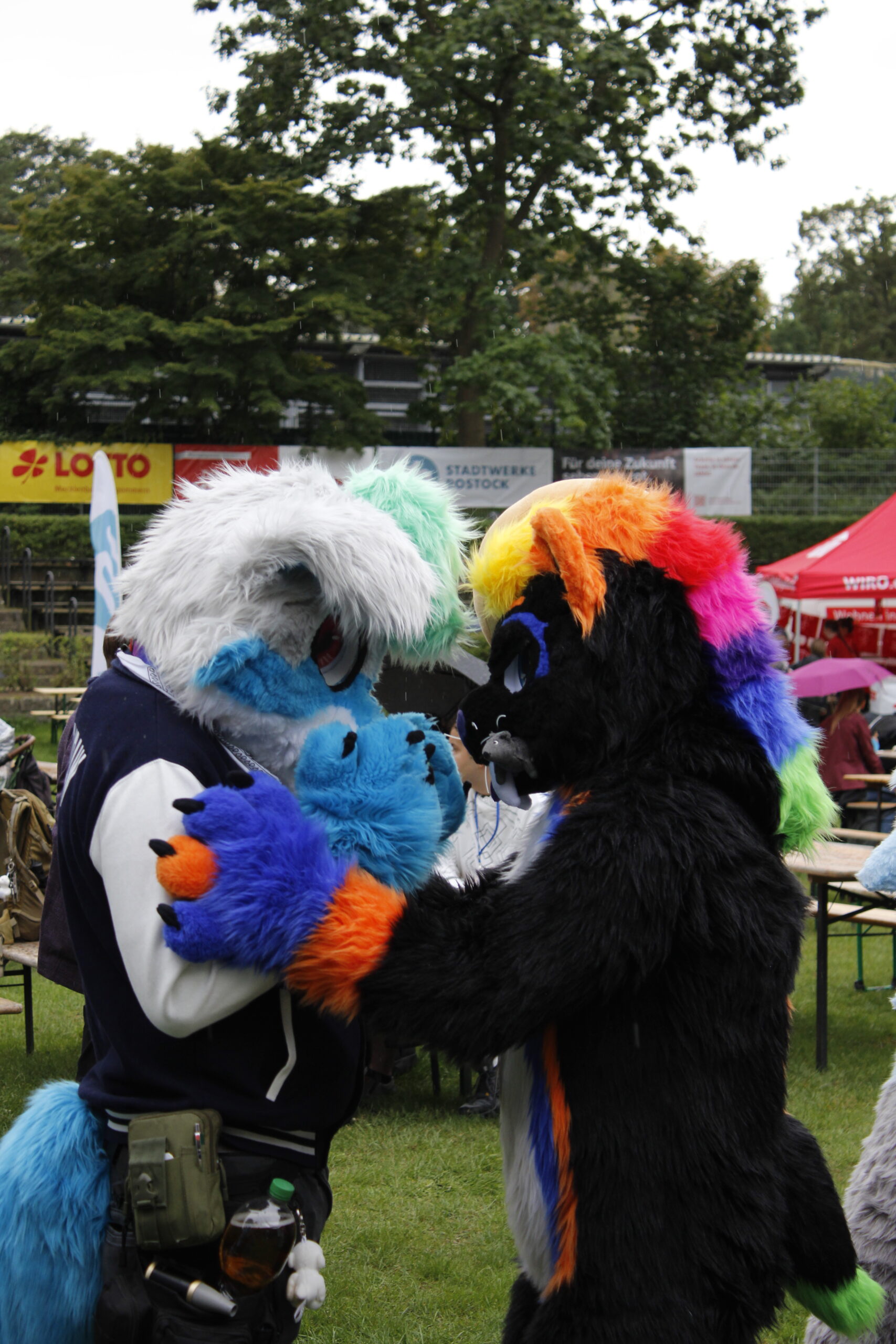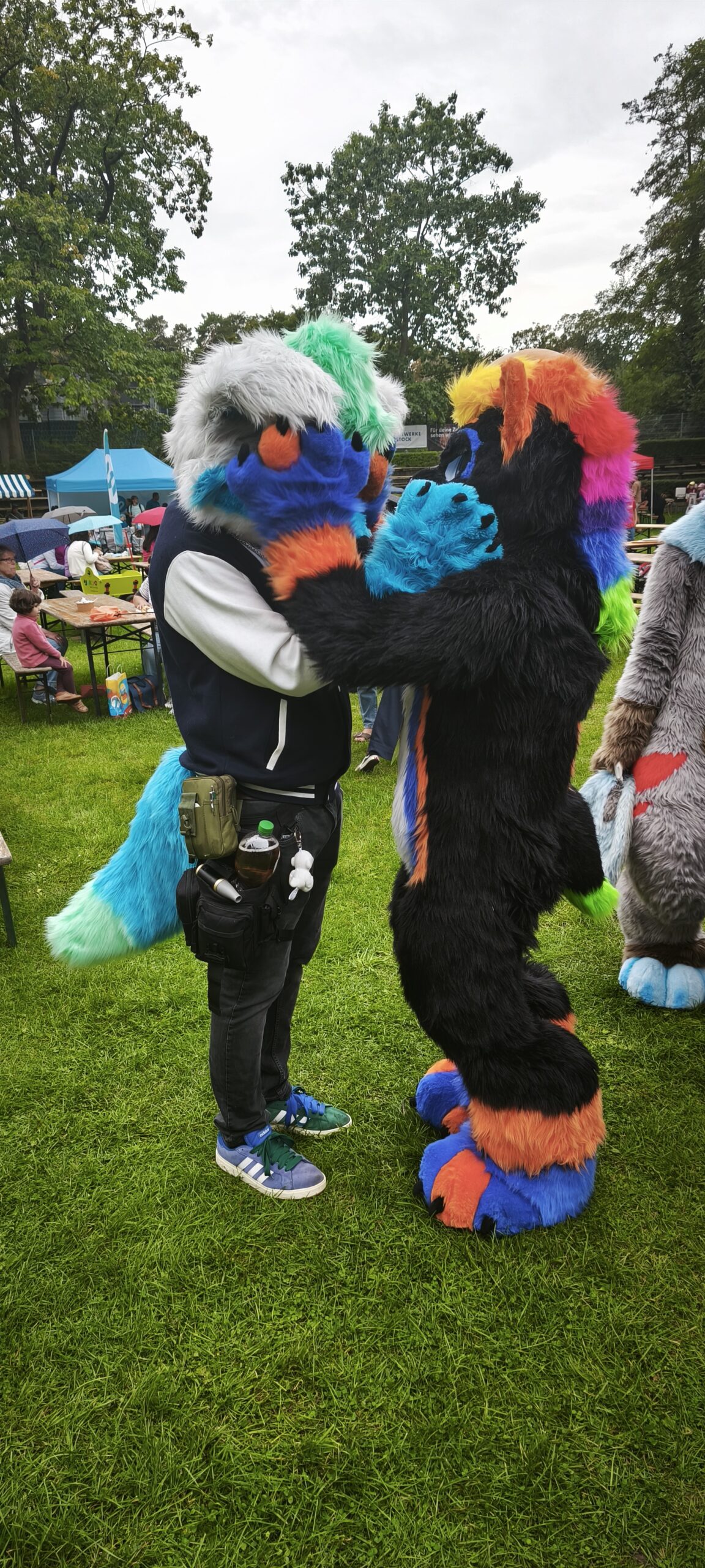 Um 13:00 Uhr standen wir auf der Bühne, erklärten, was es bedeutet, ein Furry zu sein, und spielten mit den Kindern ein lustiges Ratespiel. Sie durften erraten, welche Tiere unsere Suits inspiriert haben und hatten dabei riesigen Spaß.